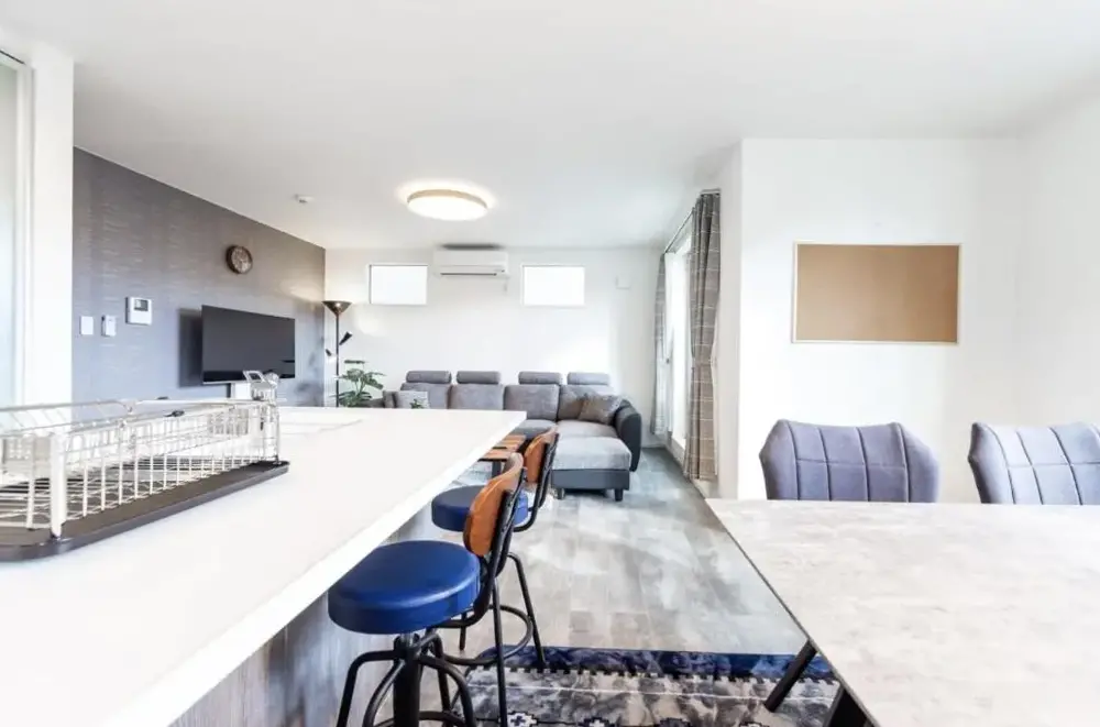 Es gibt viele Zimmer und ein großes Wohnzimmer. Das Auto kann drinnen geparkt werden. Hinter dem Haus befindet sich ein großer Supermarkt und von der U-Bahn sind es ca. 6 Minuten.